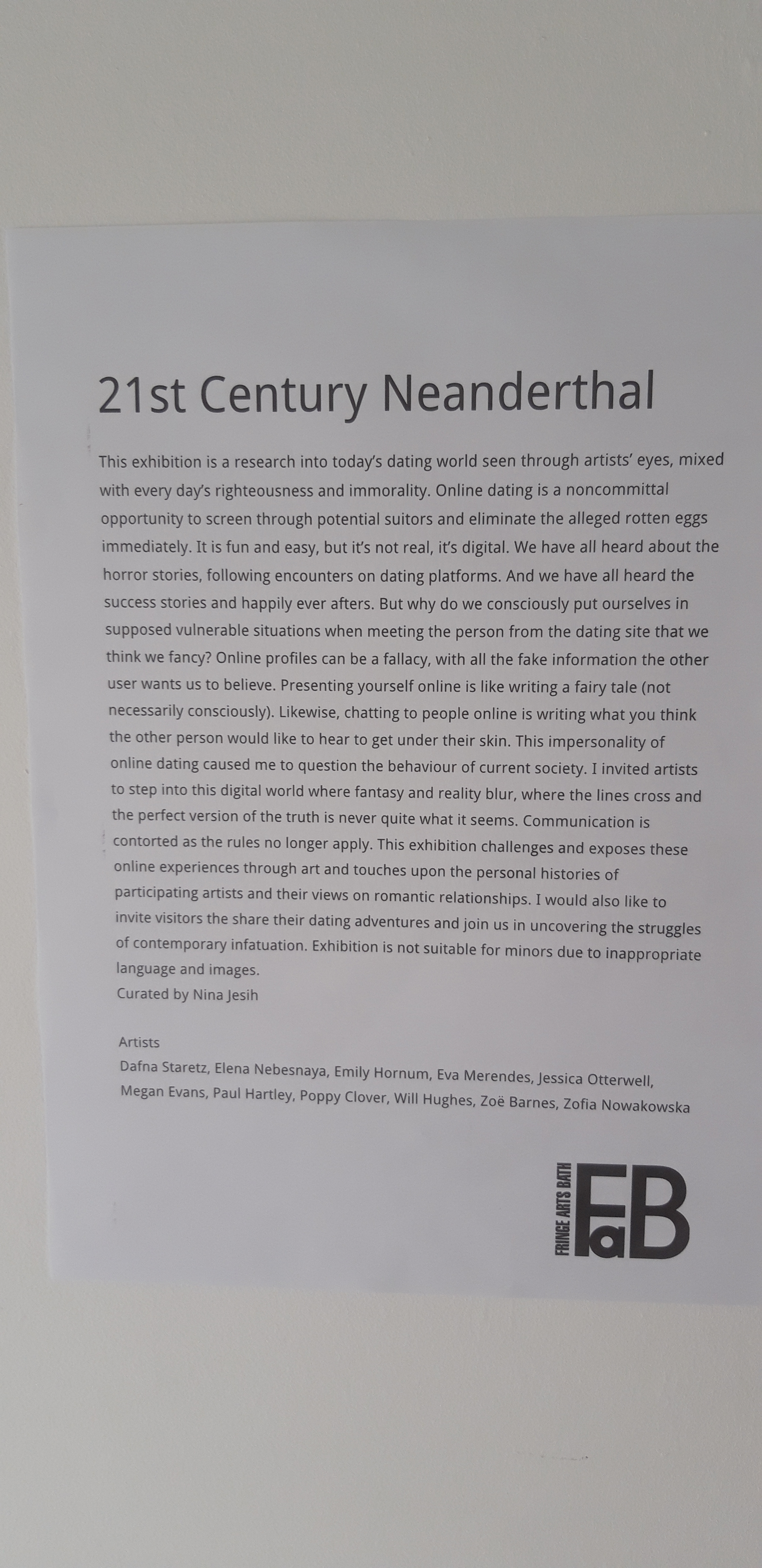 Natalie Bedford, pop up show